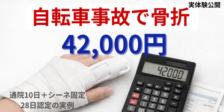 自転車事故で骨折し、実際に42,000円の共済金が支払われた経験をもとに、賠償責任保険や通院保障、固定装身具が通院扱いになるかなど、具体的な事例をまとめています。