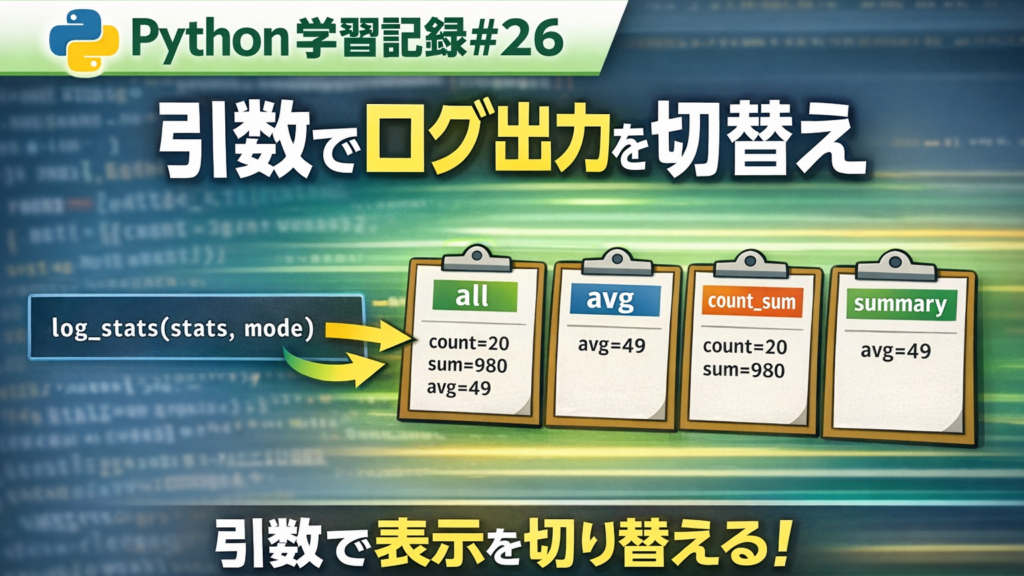 Code 🟩 Python学習記録#26|ログ出力を関数の引数で切り替える