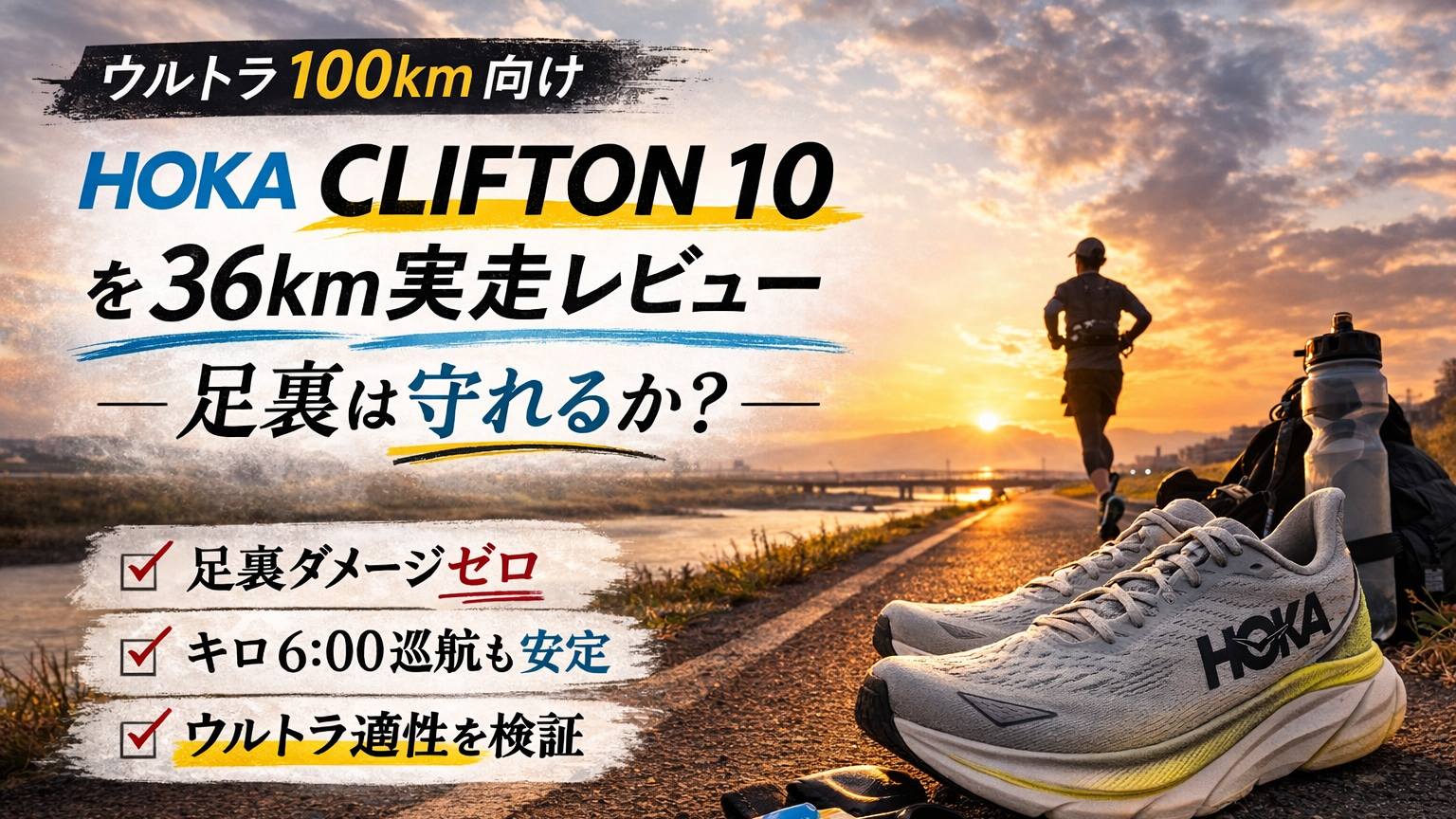 🏃‍♂️【ウルトラ100km向け】HOKA CLIFTON 10を36km実走レビュー|足裏は守れるか?