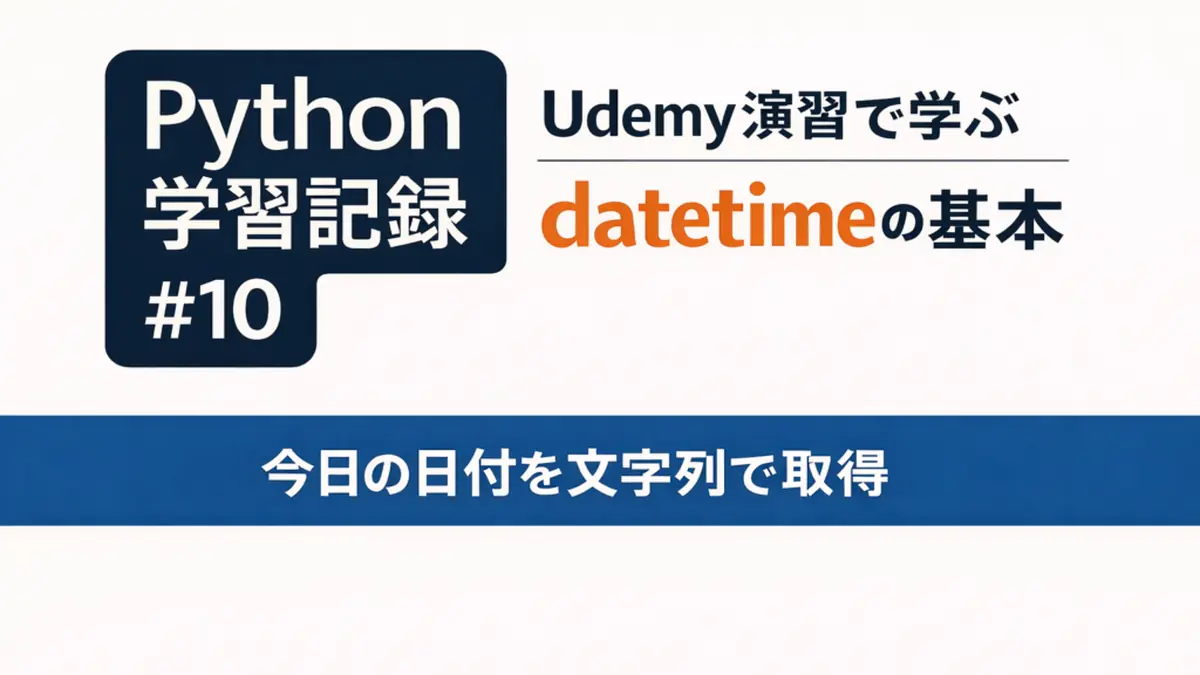 datetime.now()で現在日時を取得strftime()で文字列形式に変換- 日付フォーマットは