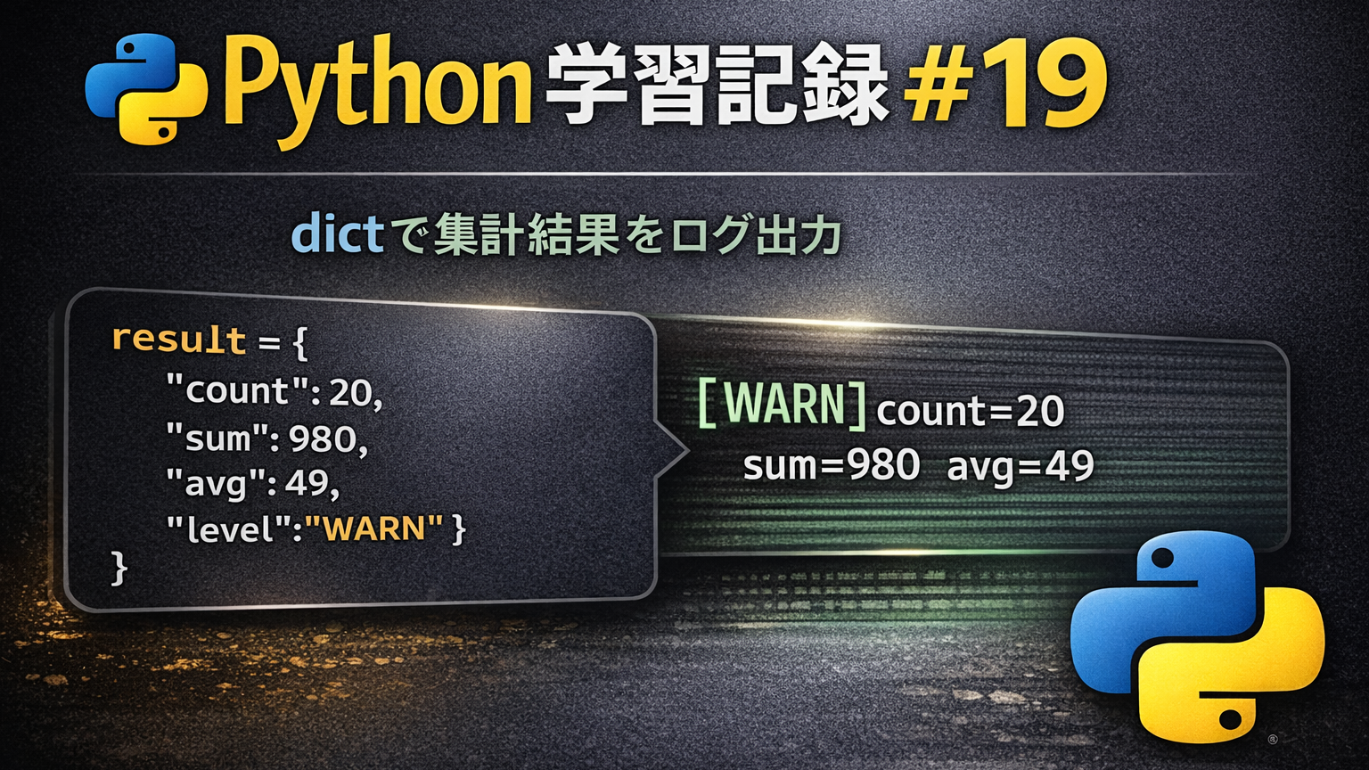 🟩 Python学習記録 #19|集計結果を辞書でまとめてログ出力する